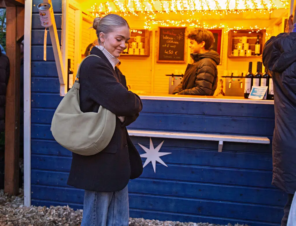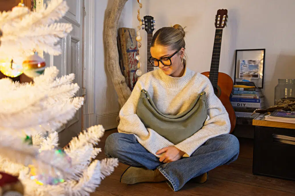 Hey – schön das du hier bist. Hier bei KEINE SCHWESTER und mir, Maikki. Seit ein paar Tagen habe ich eine neue Lieblingstasche. Die ist soooo toll. Das Wildleder fühlt sich mega weich an und sie trägt sich voll lässig. Und jetzt kurz vor Weihnachten habe ich ein super Angebot – du bekommst mit dem Code „maikki“ die EBBA-Wildleder 50 EUR günstiger. Kannst du im Warenkorb angeben. Love it.