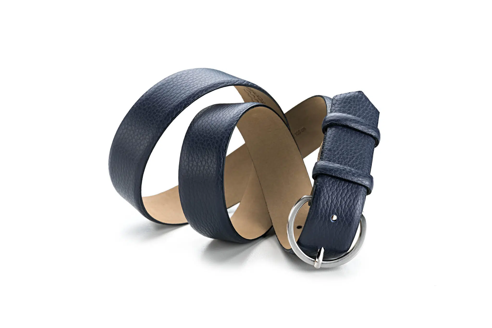 Damengürtel Genarbtes Leder Nachtblau – Silber