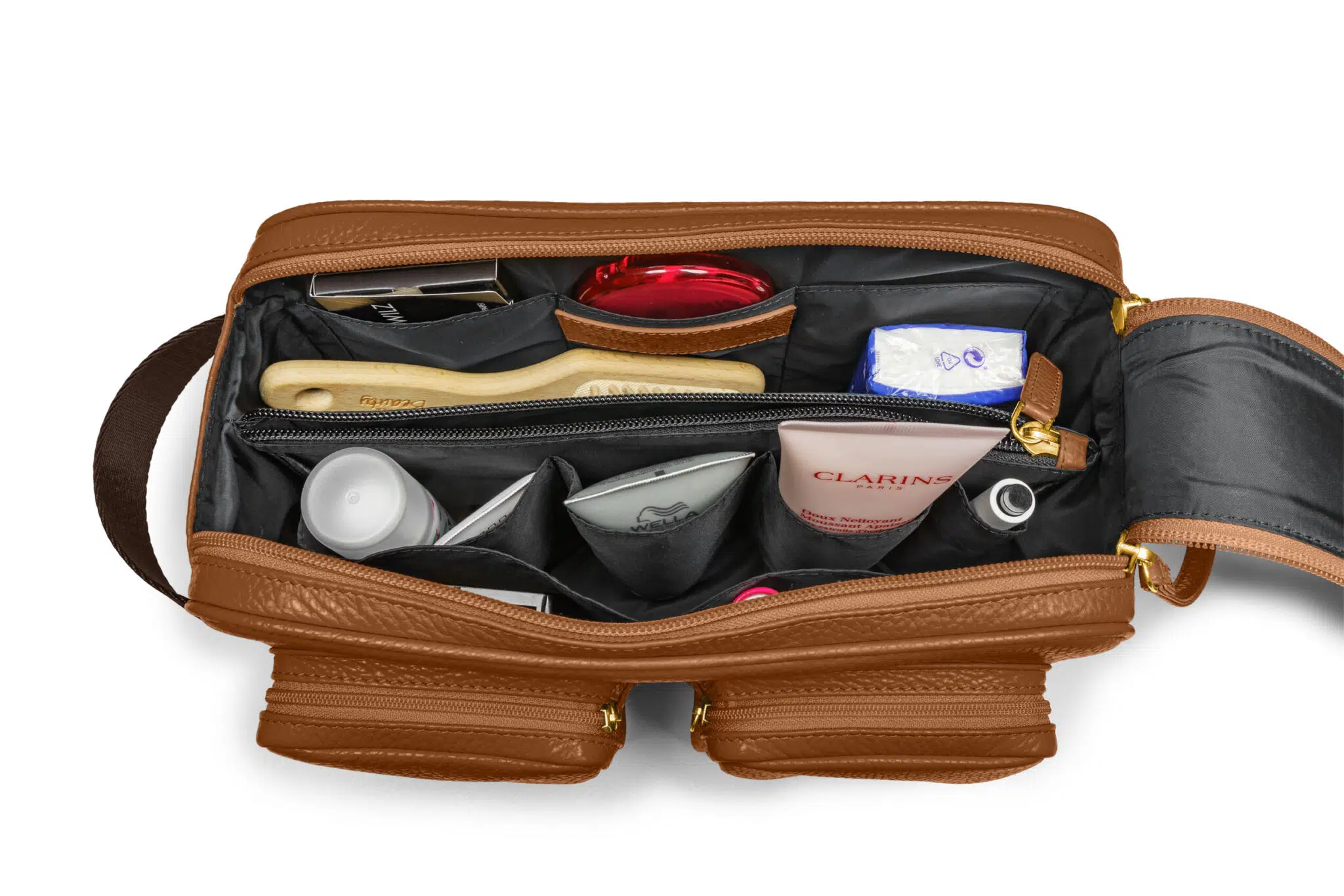All deine Pflegeutensilien sind in der Doppel-Waschtasche gut aufgehoben und zugleich stylisch verpackt – auch im heimischen Badezimmer ein absoluter Hingucker.