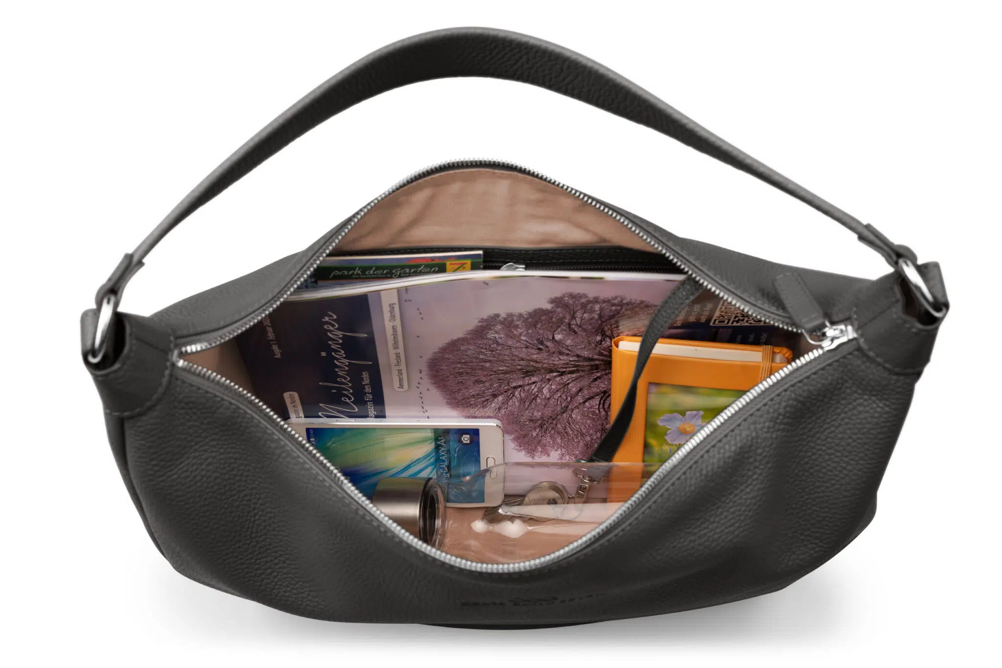 Soft und Slouchy schmiegt sich EBBA geschmeidig um den Körper und hält sich wie von allein auf der Schulter. Die lässige Beuteltasche in Halbmond-Form fällt locker und leicht. Das Innere, gefüttert mit robustem Baumwollstoff, ist mit Einschubfach, Reißverschlusstasche und Schlüsselband ausgestattet.