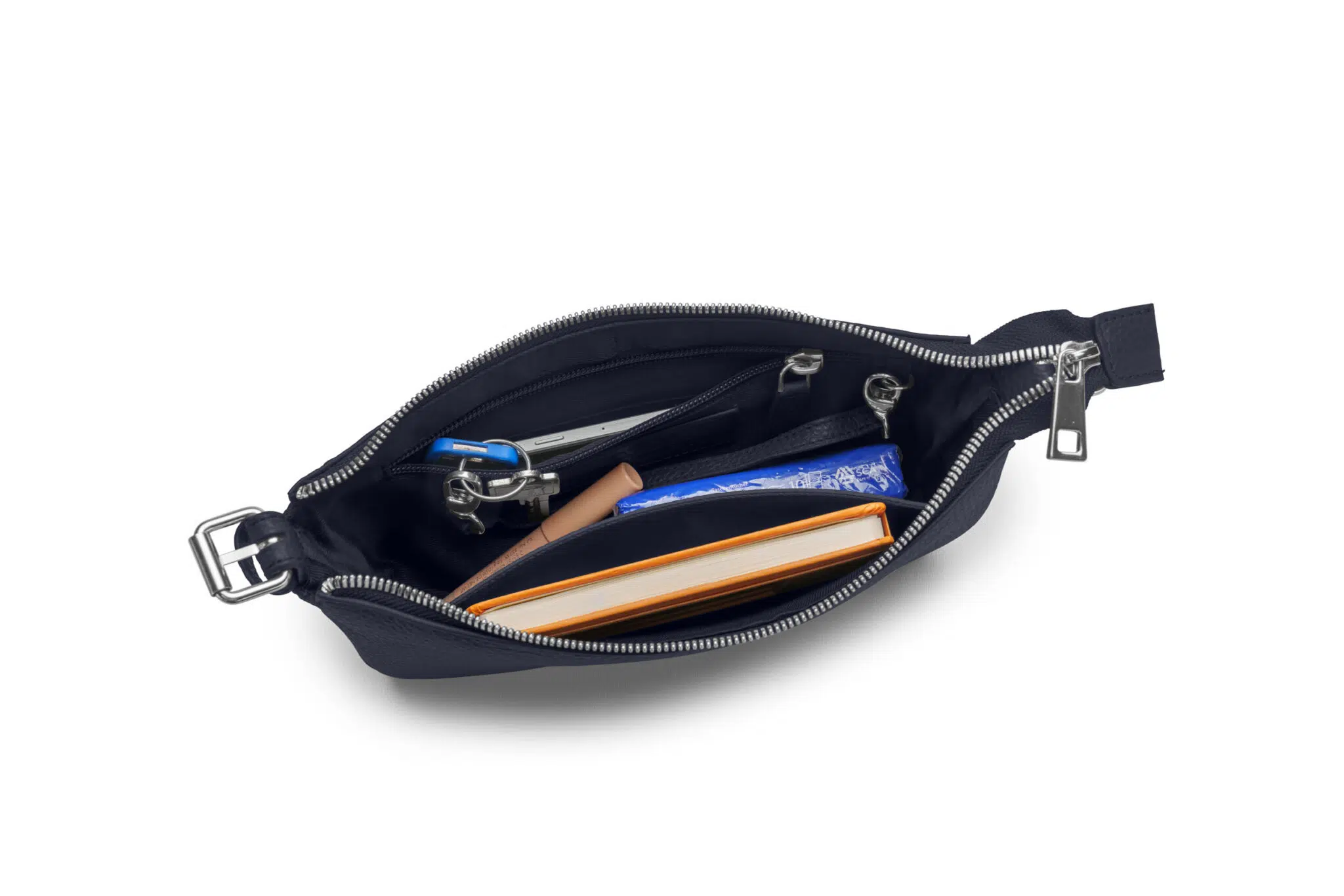 Der Trageriemen ist mit Gürtelschnallen versehen und sehr flexibel verstellbar – für alle Arm-Ausschnittgrößen. FRIDA ist eine Tasche für den leichten Alltag und natürlich den Abend.
