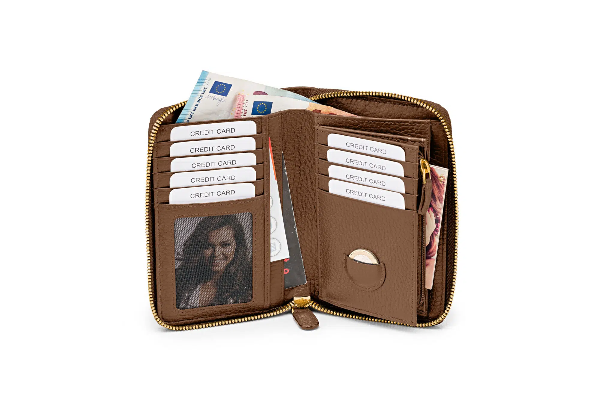 - ein kompaktes Münzfach, das durch die zweiseitige Reißverschluss-Öffnung einen optimalen Zugriff hat,