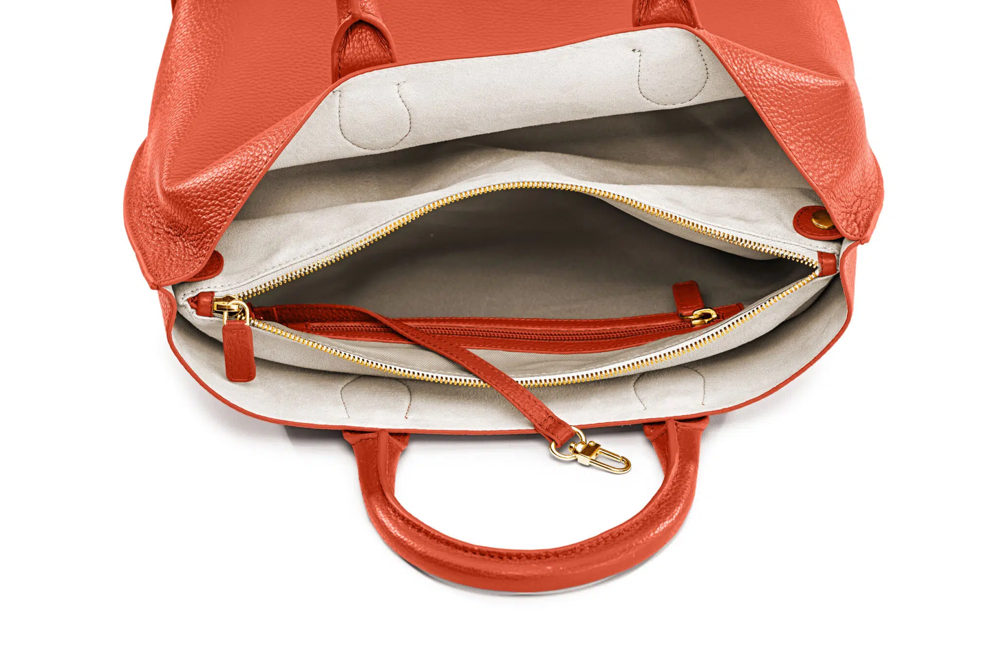 - eine herausnehmbare große Innentasche mit Reißverschluss,