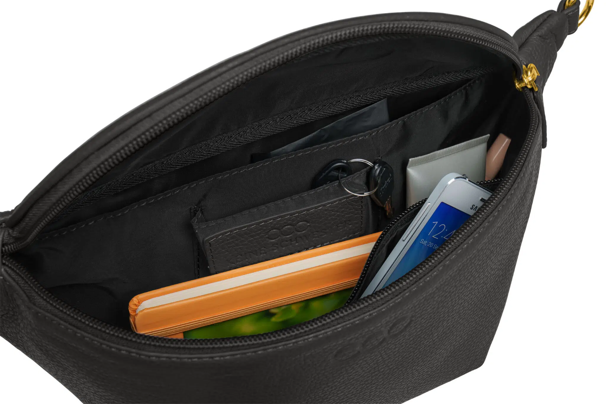 - ein Reißverschlussfach innen für Futter und