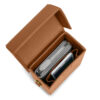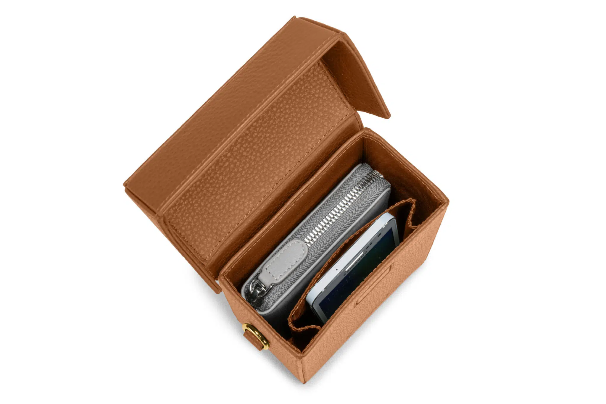 - einen langen, verstellbareren Tragegurt aus Leder.