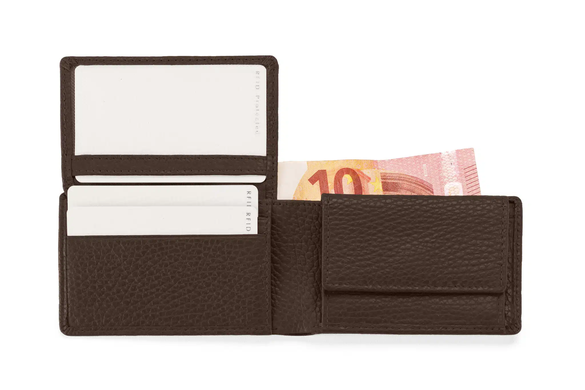Ein kleines handliches Klapp-Portemonnaie für die Hosentasche – das ist SVEN. Ein Münzfach mit Druckknopf, eine Sheinfach und ein hochklappbares Kartenetui mit vier Kartenfächer und einem Fensterfach.