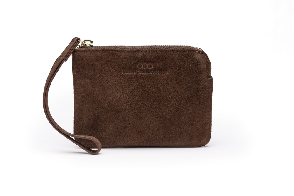 Der Reißverschluss lässt sich komfortabel über die Rundung öffnen, das Lederband dient als Handschlaufe. Weich liegt die Utensilo FENJA Wildleder in der Hand und bietet Platz für Dinge, die sonst keinen Platz haben.