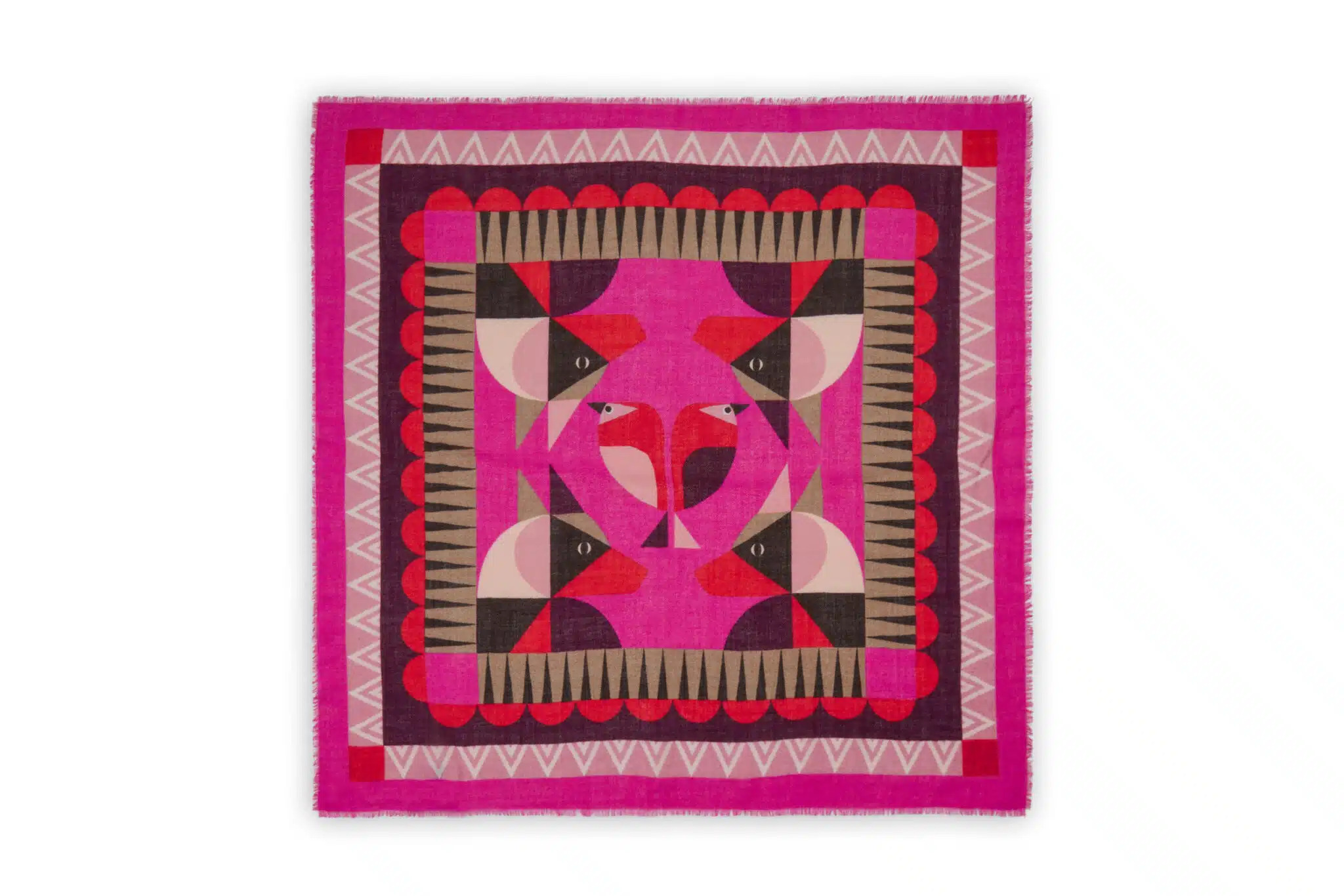 Geometrische Formen und abstrakte Tiermotive treffen auf eine wertige Wolle-Modal-Mischung mit wolligem Griff und schönem Stand. Ein kunstvolles Style-Statement – jetzt entdecken!